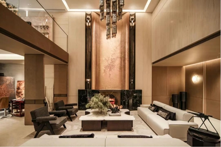 本次开放地上建筑面积约290㎡的精装实体样板间,循宋式建筑规制,打造“门庭-内院-宅院”归家动线,曲廊水景叠瀑层层递进,绘就移步异景的山水画卷。