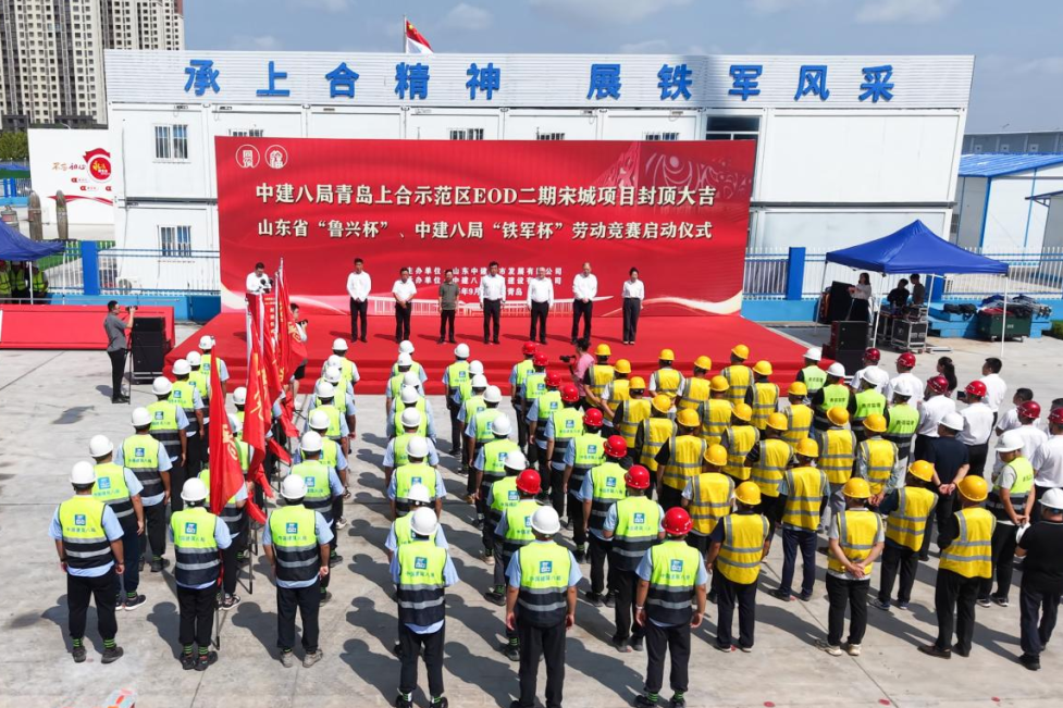 承上合精神,展铁军风采!青岛上合示范区EOD二期宋城项目封顶仪式暨劳动竞赛启动仪式顺利举办