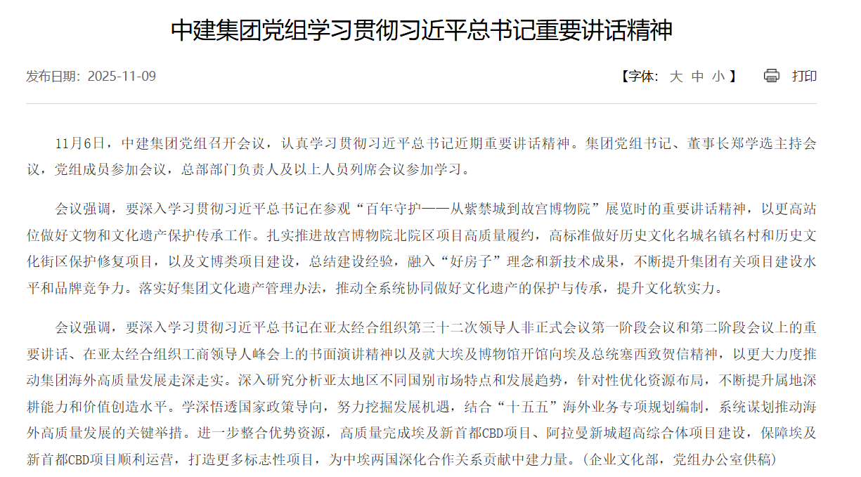 11月6日,中建集团党组召开会议,专题学习贯彻党的二十届四中全会精...2025-11-10 -